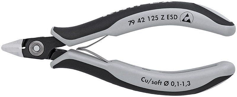 Прецизионные бокорезы для электроники антистатические ESD кусачки прецизионные для самых тонких работ по резанию, например, в электронике и точной механике. точно шлифованные режущие кромки с очень малыми фасками для точной резки чувствительных деталей электроники; также без фаски для резки заподлицо. прецизионные режущие кромки дополнительно закалены токами высокой частоты, твердость режущих кромок примерно 64 HRC.