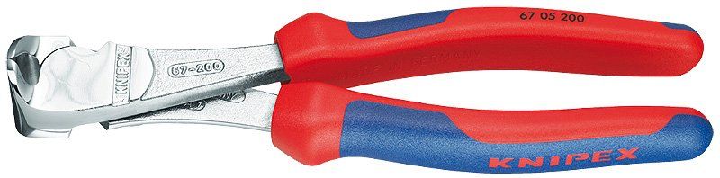 Кусачки торцевые особой мощности с режущими кромками для мягкой и твердой проволоки, а также рояльной струны. высокая режущая способность при меньших усилиях благодаря оптимальному согласованию угла режущих кромок и передаточному отношению рычагов. режущие кромки дополнительно закалены токами высокой частоты до твердости примерно 64 HRC.