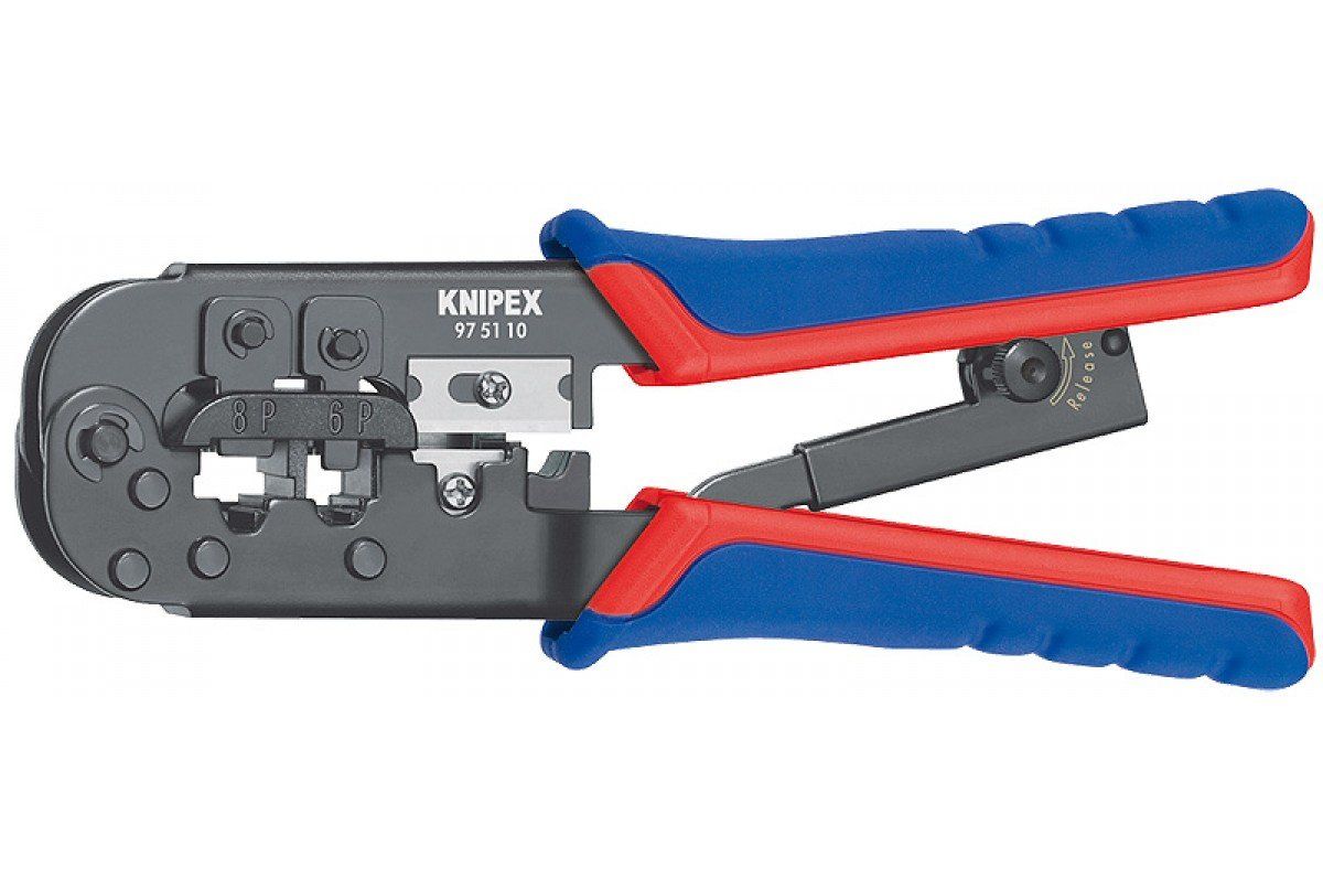 Ручной обжимник KNIPEX KN-975110 качественно выполняет опрессовку штекеров типа Western. Облегчает работу рычажная передача, которая способствует увеличению усилия резания. Данный инструмент имеет вороненую поверхность, что предотвращает появление коррозии. Подходит для реза и снятия оболочки с плоских, неэкранированных телефонных кабелей, а также для удаления изоляции с круглых кабелей.