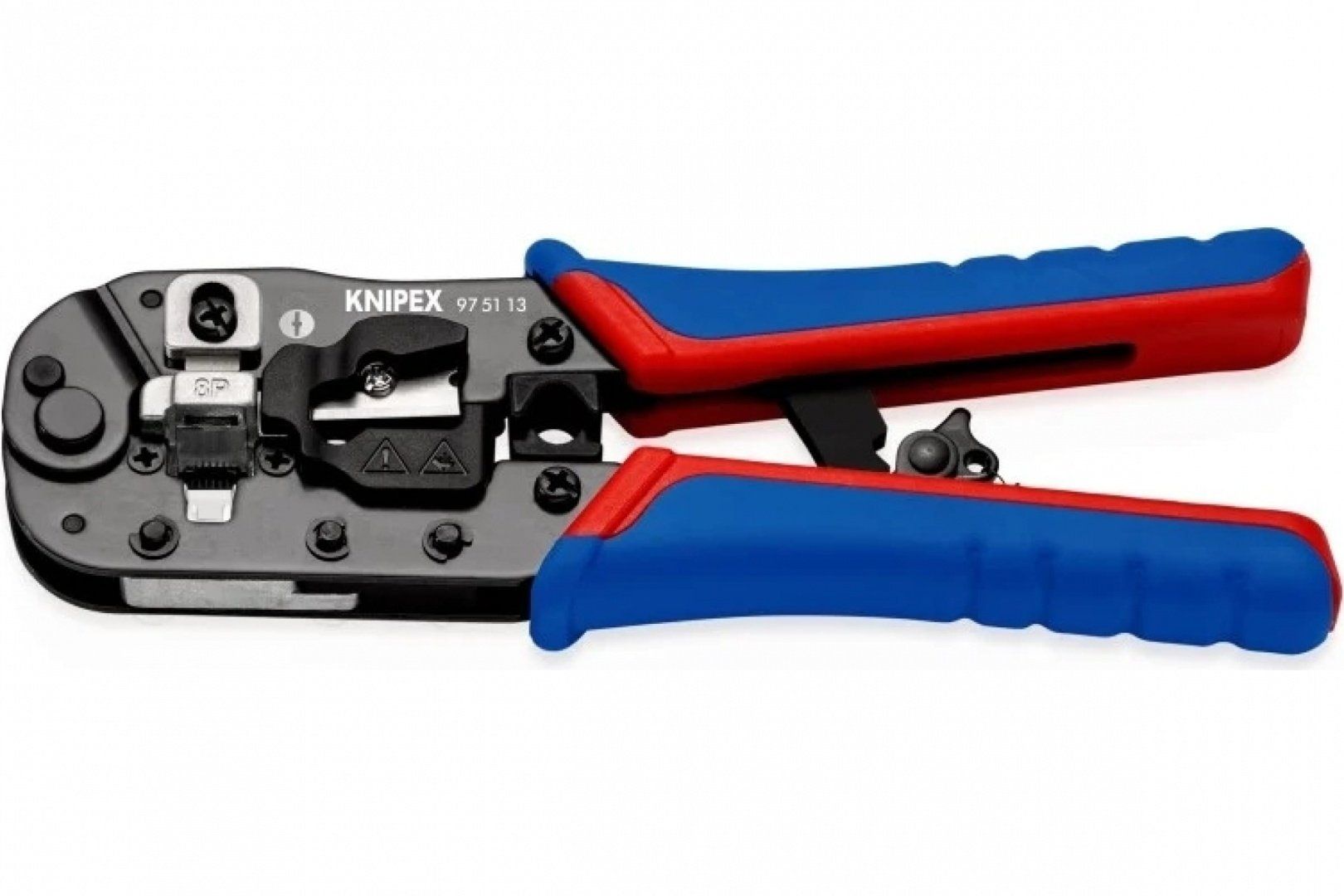 Пресс-клещи для штекеров RJ 45 Knipex 3-в-1, кол-во гнёзд: 1, 8-пин 8P8C, резка и зачистка кабеля, 190 мм KN-975113 универсальный инструмент для резки кабеля, зачистки круглого кабеля и обжима стандартных штекеров RJ45