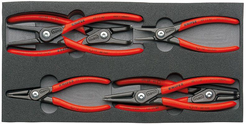 Комплект поставки: 1 x 48 11 J1 KNIPEX Прецизионные щипцы для стопорных колец для внутренних стопорных колец (Ø 12 - 25 mm), 1 x 48 11 J2 KNIPEX Прецизионные щипцы для стопорных колец для внутренних стопорных колец (Ø 19 - 60 mm), 1 x 48 21 J21 KNIPEX Прецизионные щипцы для стопорных колец для внутренних стопорных колец (Ø 19 - 60 mm), 1 x 49 11 A1 KNIPEX Прецизионные щипцы для стопорных колец для внешних стопорных колец (Ø 10 – 25 mm), 1 x 49 11 A2 KNIPEX Прецизионные щипцы для стопорных колец для внешних стопорных колец (Ø 19 – 60 mm), 1 x 49 21 A21 KNIPEX Прецизионные щипцы для стопорных колец для внешних стопорных колец (Ø 19 – 60 mm)