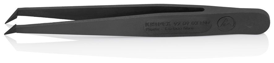 Пинцет углепластиковый ESD Knipex KN-920903ESD 110 мм, гладкие заострённые губки углом, чёрный матовый