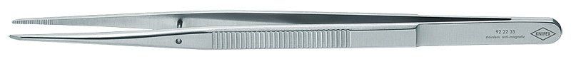 Пинцет захватный прецизионный Универсальный пинцет подходит для требований стандартных областей применения и прецизионных задач. Широкий выбор вариантов конструкции: прямые, угловые, с гладкими или шершавыми захватными поверхностями и ручками, со вставочными иглами, с узкими или тупыми наконечниками, а также в различных вариантах длины. Для электронной промышленности, часовщиков и ювелиров. Высококачественная нержавеющая сталь: чрезвычайно прочная и очень хорошая коррозионная стойкость к различным атмосферным воздействиям и многим агрессивным материалам.