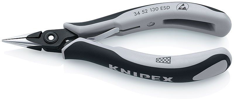 Плоскогубцы захватные прецизионные для электроники ESD, плоскокруглые губки с насечкой KN-3452130ESD
